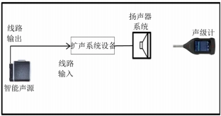 对场景2,预先录制公告的扩声系统如图4所示。如果扩声系统不含系统传声器而是直接通过播放器播放音频,则需要通过外部信号发生器(智能声源线路输出)将STIPA信号输入至系统中,通过调节扩音系统持续播放大小可调的STIPA测试信号。测量时,扩声系统处于最高可用增益工作状态,测试信号通过扩声调音台线路输入扩声系统,扩声系统处于稳定工作状态。